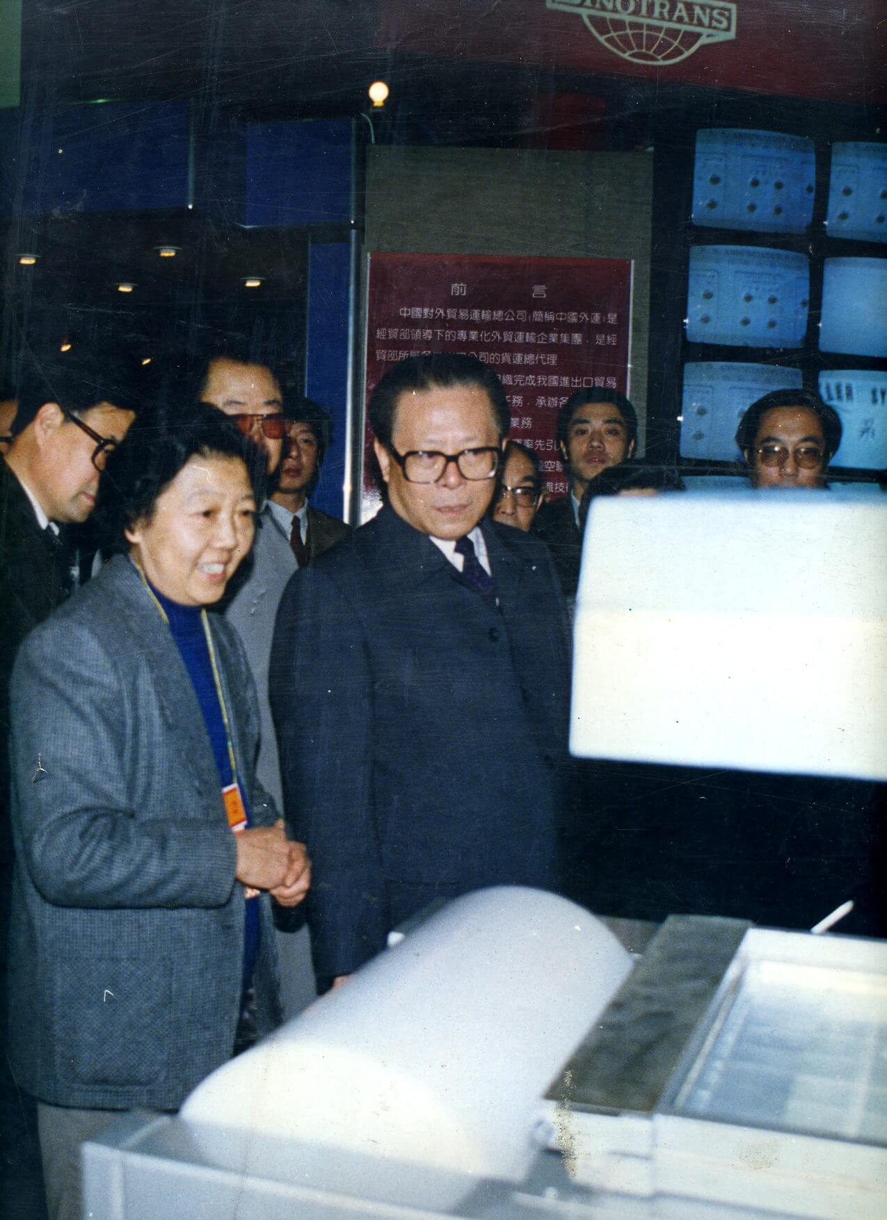 中共中央总书记江泽民参观浙江省机电设计研究院自行设计研制的贴体包装设备